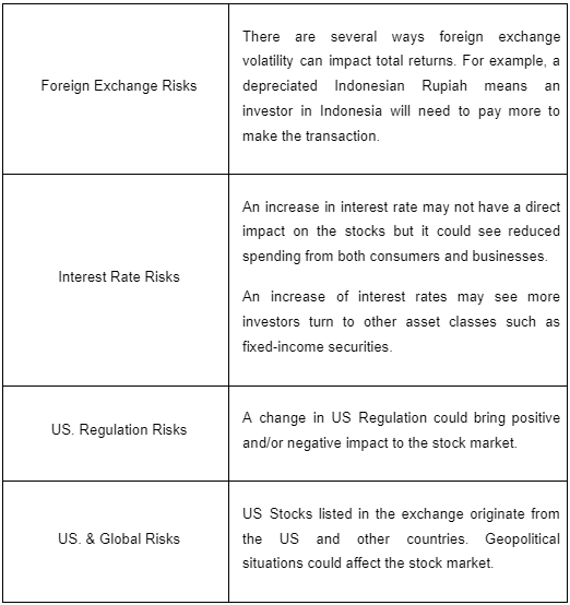 US Stocks is a security that provides equity ownership of the issuing corporation. US Stocks are listed and transacted on US stock exchanges such as New York Stock Exchange (NYSE) and Nasdaq Stock Market (NASDAQ).